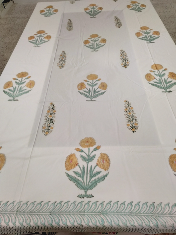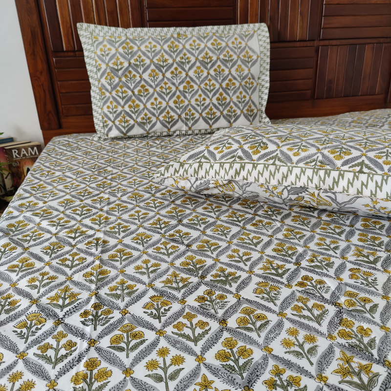 MISTY MUSTARD – Hand Block Printed Bedsheet with 2 Reversible Pillow Covers