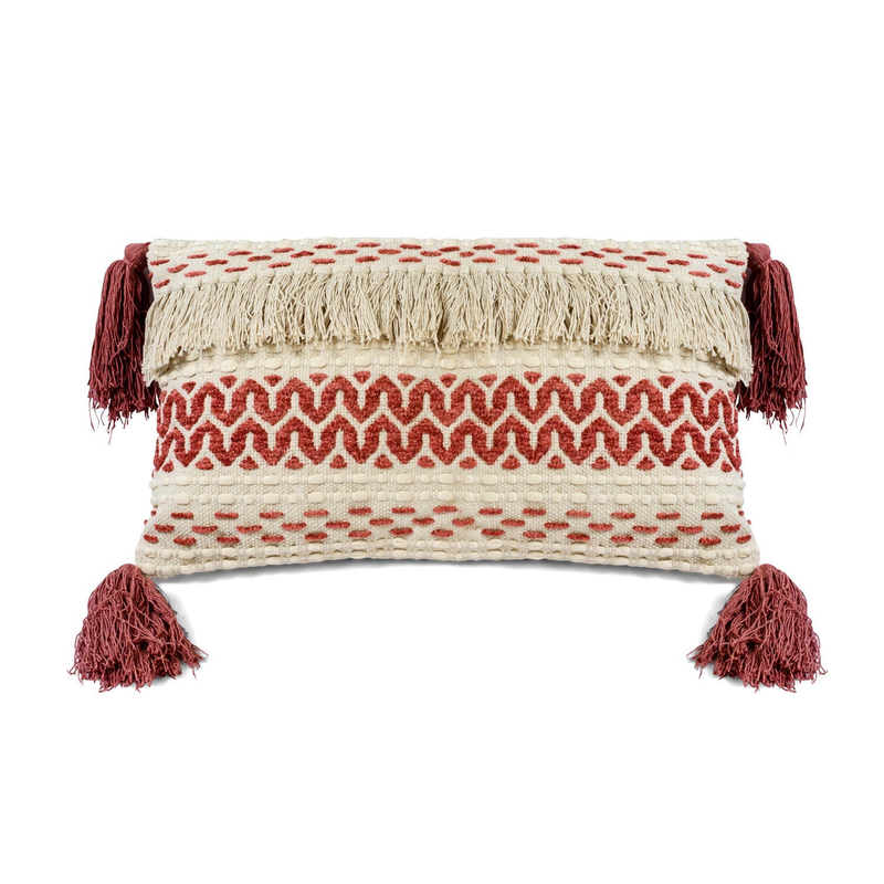 Pink Maktabi Boho Lumbar Cushion with Tassels
