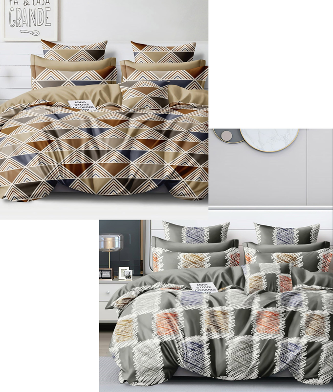 UPNEJA V HANDLOOM Printed Fitted (Elastic) Double Bedsheet with two pillow cover ( 78″X72″) Pack of 2