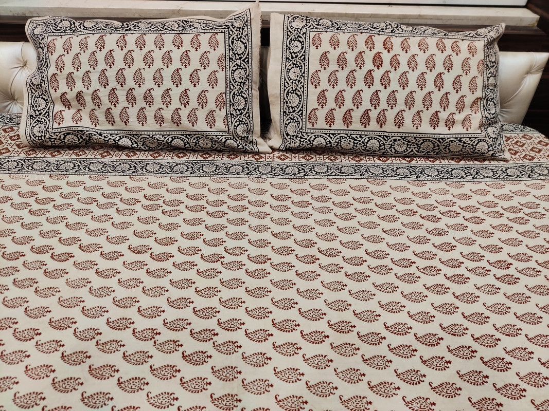 Cotton Bedsheet with 2 Pillow Covers Hand Block Bagru Print (90×108 inches)