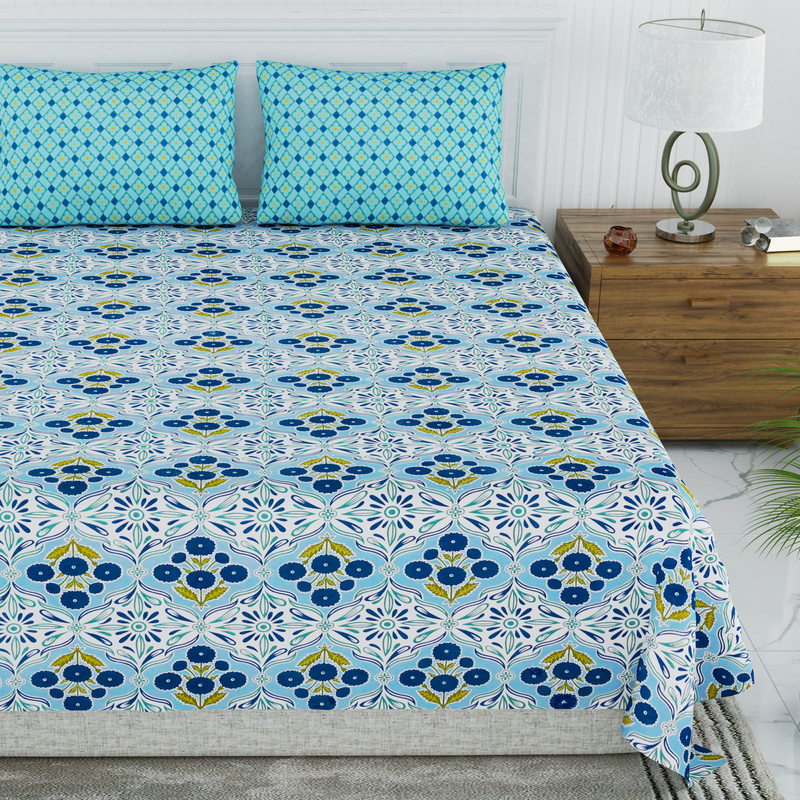 Premium 100% Cotton King Size Bedsheet with 2 Pillow covers 300 TC – 90 x 108 Inches – oriental Blue